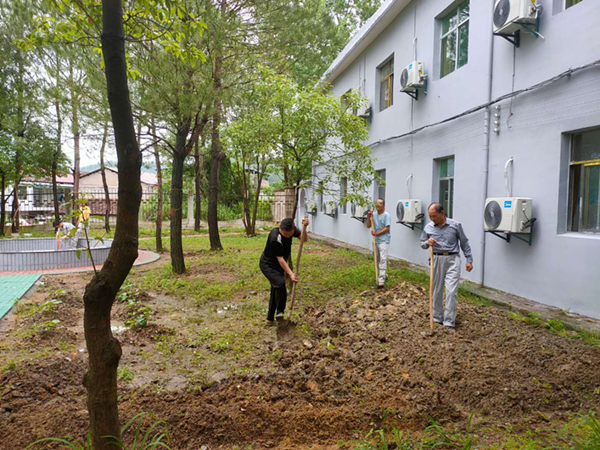 ――記南城分公司生活區(qū)建設(shè) 春尾夏初,南方的雨水總是格外的充盈,將漫山遍野都浸綠。借著雷雨過后難得的休憩,呼吸著清爽的空氣,迎著充滿青草香味的晨風(fēng),兗州中材南城分公司全體員工開始了新一輪的生活區(qū)綠化建設(shè)。 南城分公司于2020年3月整體搬遷至新生活區(qū),搬家之前,大家就經(jīng)過多次熱烈的討論,滿懷憧憬計(jì)劃新家的樣子,哪里要種樹,哪里要養(yǎng)花,經(jīng)常在歡聲笑談中就已敲定。搬遷后分公司積極參照項(xiàng)目形象建設(shè)標(biāo)準(zhǔn),結(jié)合群議方案進(jìn)行生活區(qū)建設(shè),向花園式園區(qū)、田園式生活大步前進(jìn)。 今天的任務(wù)十分“艱巨”,要將生活區(qū)后院改造成菜園。大家熱情高漲,自發(fā)地分成多個(gè)小組墾荒,前面拿鐵鍬的剛翻完地,后面緊接用鋤頭鎬出田壟,現(xiàn)場一派熱火朝天的景象,忙而不亂,秩序井然。  盡管大家干的汗流浹背,但歡聲笑語不減,都感到很充實(shí)。種植經(jīng)驗(yàn)足的老員工向青年人講解種田知識(shí),將中國人走到哪種到哪的精神展現(xiàn)的淋漓盡致,又演變出另一種文化傳承。不知不覺中,田園農(nóng)莊的雛形就已具備。