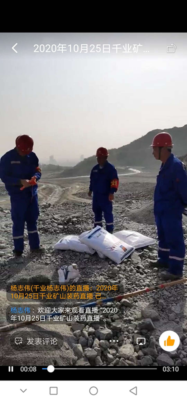 近日,焦作市公安局支隊領導按照河南省廳民爆未端管控全視頻要求,建立了覆蓋全市可視頻的釘釘群,組織了焦作市轄區(qū)爆破作業(yè)人員本群,對爆破作業(yè)進行全程跟蹤管理。馬村分公司積極響應南省民爆末端管控全視頻要求,組織爆破作業(yè)相關人員進入“焦作市爆破作業(yè)管控群”,利用將爆破現(xiàn)場進行直播,主要直播人員到位情況(三大員及工程技術人員是否到位)、卸車、電子雷管入庫、裝填、起爆等視頻。 在爆破作業(yè)中,首先,現(xiàn)場人員全部到位,包括爆破工程技術人員1名,爆破員2名,安全員1名,保管員2名,持各自人員名片進行報到。  當運輸巖石粉狀大包和電子雷管的車到達作業(yè)地點后,對數(shù)量進行清點,卸車。直播開始。  下圖為將電子雷管進行入庫。  下圖為爆破員進行裝填直播。 最后,起爆直播。 馬村分公司經(jīng)過三天釘釘視頻直播的摸索與實踐,逐步建立起完整可行的直播過程,且受到市局相關領導的口頭表揚。馬村分公司將會一直嚴格按照焦作市局要求,利用釘釘直播,實現(xiàn)民爆末端管控全視頻要求。 |