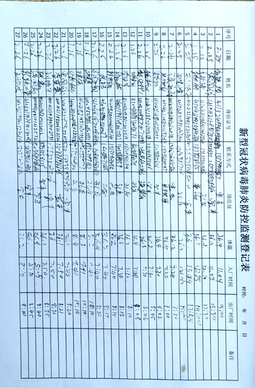 (3)體溫篩查。每天對(duì)當(dāng)班人員進(jìn)行兩次體溫篩查,上班前、下班前各一次,填寫記錄臺(tái)賬,并報(bào)送疫情防控領(lǐng)導(dǎo)小組。 (4)佩戴口罩。要求在崗員工必須主動(dòng)佩戴口罩,掌握正確佩戴口罩的方法,隊(duì)伍不佩戴口罩人員,一律禁止進(jìn)入辦公及生產(chǎn)場(chǎng)所,并進(jìn)行嚴(yán)肅處理。 (5)分散就餐。返崗人員施行分散就餐,錯(cuò)峰就餐制,嚴(yán)禁在食堂集中就餐。餐廳工作人員施行封閉式管理,吃住在生活區(qū),并安排專人到縣防控指揮部制定超市采購(gòu)米、面、油、蔬菜等食材。 (6)開窗通風(fēng)。辦公場(chǎng)所、生產(chǎn)車間、食堂等公共場(chǎng)所保持開窗通風(fēng),并對(duì)空調(diào)進(jìn)行消毒。 (7)嚴(yán)格防疫物資領(lǐng)用。防疫物資根據(jù)按需領(lǐng)取的原則,嚴(yán)禁浪費(fèi)。領(lǐng)用人按制度規(guī)定填寫領(lǐng)用臺(tái)賬。  (8)設(shè)立臨時(shí)隔離室。寶豐分公司在礦山上設(shè)立意見臨時(shí)隔離室,用于臨時(shí)出現(xiàn)發(fā)熱異常狀況的人員進(jìn)行隔離。  (9)減產(chǎn)集聚。停止員工非必要集聚,盡量采取視頻會(huì)議、微信、電話等交流形式,最大限度減少集聚性的室內(nèi)活動(dòng)。 (10)加強(qiáng)外來(lái)人員管理。對(duì)非本單位來(lái)訪人員從嚴(yán)控制,原則上不予入內(nèi)。確有來(lái)訪需求人員,須出示工作證或介紹信等有效證明,并由接訪人員派專人接待,并對(duì)來(lái)訪人員進(jìn)行提問(wèn)篩查,詳細(xì)登記個(gè)人信息。