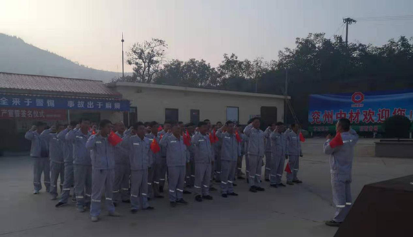 在這個秋高氣爽、瓜果飄香,到處洋溢著一片豐收景象的時節(jié),我們迎來了偉大祖國的70周年華誕。為慶祝祖國的生日,兗州中材蘭陵分公司在辦公生活區(qū),組織開展了以“愛國敬業(yè),安全發(fā)展”為主題的升國旗、安全生產(chǎn)宣誓等一系列活動。 “全體肅立,行注目禮,升國旗,奏唱國歌!”伴隨著嘹亮的國歌,五星紅旗冉冉升起,兗州中材蘭陵分公司全體人員,莊嚴肅靜,目光隨著紅旗升高。旗升至頂,全體人員注目禮畢,高呼“我愛你中國,祖國萬歲”。 祖國是大家,家庭是小家。每個員工的安全,決定著一個家庭的幸福團圓,進而牽動著祖國的和諧發(fā)展。因此,始終要把安全放在首位。“我宣誓:時刻牢記安全生產(chǎn)方針,遵守安全生產(chǎn)法律法規(guī),服從公司安全管理規(guī)定,認真履行安全生產(chǎn)責(zé)任,全面提高安全技能,讓家人放心,讓企業(yè)放心,做一名合格的員工!”錚錚誓言,從每名員工口中朗朗而出,飄蕩在礦山,回蕩在心田。