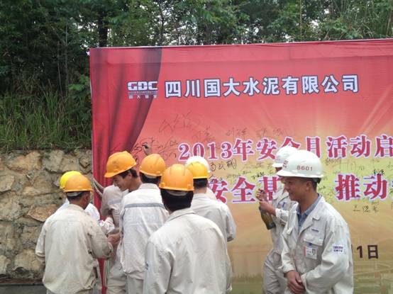 四川國大水泥舉行安全月啟動(dòng)儀式 6月1日,四川國大水泥有限公司舉行了以“強(qiáng)化安全基礎(chǔ),推動(dòng)安全發(fā)展”為主題的安全月啟動(dòng)儀式。江油市含增鎮(zhèn)安辦主任唐開文到會并講話。會議由國大副總鐘義主持,兗州中材國大礦山的全體員工也應(yīng)邀參加。 唐開文在講話中回顧了過去幾年國大水泥對安全生產(chǎn)作出的巨大貢獻(xiàn),他還表示,礦山現(xiàn)場的安全工作已成為江油市乃至綿陽市的一個(gè)安全示范亮點(diǎn),這與兗州中材的積極努力也是密不可分。國大安全經(jīng)理余德權(quán)在對安全生產(chǎn)諸方面作出重要指示后,也針對礦山安全施工提出更高的要求,希望兗州中材能將良好的安全工作習(xí)慣保持下去。會上,給全體員工發(fā)放了安全手冊。每位員工在安全月宣傳墻上簽名,這將會議推上了一個(gè)高潮。會后,員工們均表示:通過此次啟動(dòng)儀式,使得安全工作更加深入人心。對于安全生產(chǎn)的重視,時(shí)刻不敢松懈! 杜國賓