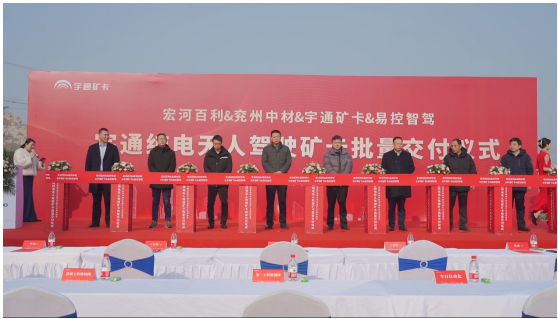 2022年12月28日,宏河百利、兗州中材、宇通礦卡、易控智駕四家企業(yè)代表在兗州中材鄒城分公司隆重舉行了純電無(wú)人駕駛礦卡批量交付儀式。