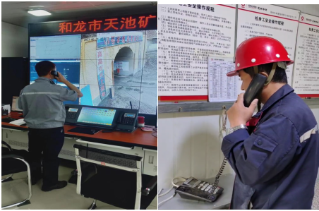 首先進(jìn)行井下火災(zāi)應(yīng)急預(yù)案演練,此演練是模擬井下配電室起火,傷員在配電室中昏迷,需立即進(jìn)行搶救工作。調(diào)度室接到報(bào)警后,立即通知受影響的其他作業(yè)人員撤離,并按照匯報(bào)程序及時(shí)通知帶班礦領(lǐng)導(dǎo)、礦長(zhǎng)、相關(guān)科室及應(yīng)急救援隊(duì)伍等人員。