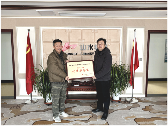 12月25日,煙臺山水水泥有限公司總經理孫明泉向兗州中材建設有限公司棲霞分公司頒發(fā)了“優(yōu)質服務商”榮譽獎牌,這一榮譽肯定了棲霞分公司本年度高效完成了生產任務。