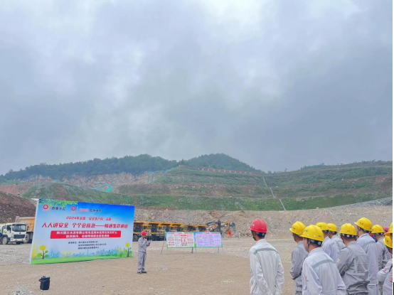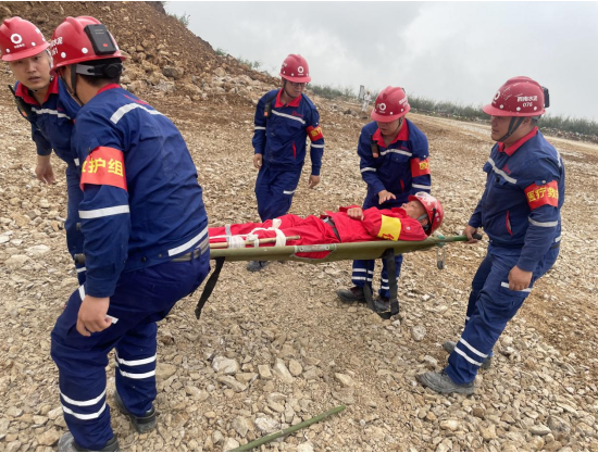演練現(xiàn)場模擬遇強降雨后邊坡發(fā)生垮塌事故,在接到險情報告后,應急指揮部立即啟動應急預案,組織各救援小組趕赴現(xiàn)場