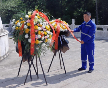 驚雷浮雕、陳獨(dú)秀銅像、新青年碑刻......走過柏林墓道,來(lái)到陳獨(dú)秀先生的墓前,項(xiàng)目執(zhí)行經(jīng)理張作鋼同志代表公司敬獻(xiàn)花圈,帶領(lǐng)全體黨員和青年同志,懷著無(wú)比崇高的敬意,恭敬地向墓碑三鞠躬,用行動(dòng)表達(dá)對(duì)先生的敬仰之情。