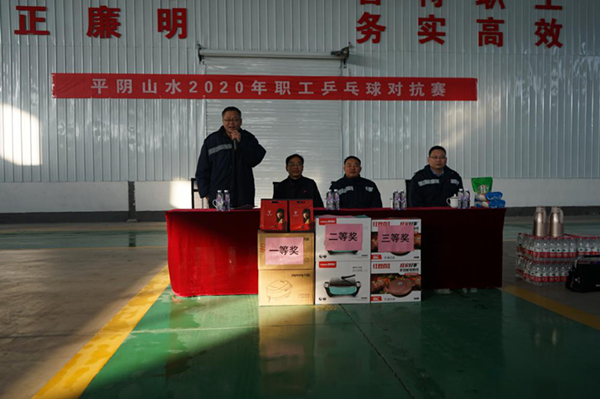 1125日,由平陰山水水泥有限公司主辦的平陰山水2020年職工乒乓球對抗賽在平陰山水塑編公司辦公區(qū)舉行。來自平陰山水公司、骨料車間、三線項目部等部門及兗州中材建設(shè)有限公司平陰分公司,共計30參賽隊員參與了本次賽事。平陰山水水泥有限公司侯書記等出席了開幕式,并致宣布比賽開始。