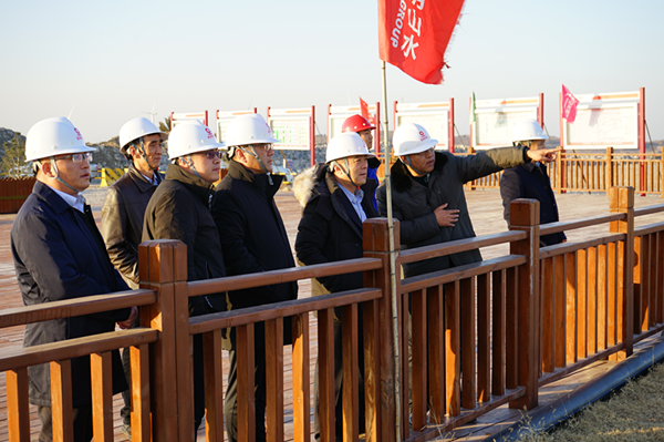 在觀景平臺,劉向張總一行介紹了項目建設初期對礦山治理、綠色礦山建設過程、礦山噴淋系統(tǒng)、路王漿道路、東部采區(qū)終了邊坡及平陰山水3號水泥生產線等重點工作開展完成情況。
