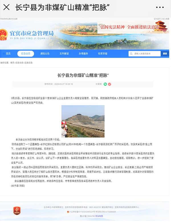 3月25日,宜賓市長寧縣應(yīng)急局組織全縣11家非煤礦山企業(yè)負責人和安全管理員、雙河鎮(zhèn)以及硐底鎮(zhèn)政府相關(guān)人員共計30余人召開了全縣非煤礦山(露天采石場)安全生產(chǎn)現(xiàn)場會。 長寧縣應(yīng)急局邀請兗州中材長寧分公司作為全縣非煤礦山的正面典型為參會企業(yè)分享開采經(jīng)驗。 上午9點參會人員到達長寧分公司―紅獅水泥礦山現(xiàn)場,分公司員工與業(yè)主接待了到場的市縣領(lǐng)導以及企業(yè)參會人員。同時嚴格按照防疫要求進行體溫測量,人員信息登記入場。   9:30分全部人員到齊,由長寧分公司職工帶領(lǐng)大家參觀礦山現(xiàn)場,為參觀人員介紹礦山整體情況,相關(guān)開采技術(shù),并解答參觀人員提出的問題。    10:30參觀結(jié)束,參觀人員對于此行都感到滿意,我們的礦山工作也得到了大家的認可,相關(guān)同仁們都紛紛表達此行收獲甚多。 現(xiàn)場參觀學習結(jié)束后,當天下午召開了室內(nèi)培訓會,培訓會邀請了市專家?guī)鞂<遥瑫r長寧分公司職工葉剛同志很榮幸在受邀之列。 針對于非煤礦山安全開采等技術(shù)問題,兗州中材長寧分公司作為正面企業(yè)給參會企業(yè)分享了好的經(jīng)驗,同時也從會議中汲取了其他好的經(jīng)驗方法。 3月27日,宜賓市應(yīng)急管理局報道了此次會議。此次會議中市縣領(lǐng)導高度評價了兗州中材長寧分公司的礦山開采工作,同時被市縣領(lǐng)導評為正面典型我司感到很榮幸。在此后的工作中我們要更努力,爭取更大的進步,樹立好我們的企業(yè)形象。 |