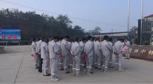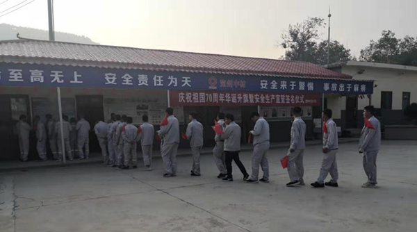 在這個秋高氣爽、瓜果飄香,到處洋溢著一片豐收景象的時節(jié),我們迎來了偉大祖國的70周年華誕。為慶祝祖國的生日,兗州中材蘭陵分公司在辦公生活區(qū),組織開展了以“愛國敬業(yè),安全發(fā)展”為主題的升國旗、安全生產(chǎn)宣誓等一系列活動。 “全體肅立,行注目禮,升國旗,奏唱國歌!”伴隨著嘹亮的國歌,五星紅旗冉冉升起,兗州中材蘭陵分公司全體人員,莊嚴肅靜,目光隨著紅旗升高。旗升至頂,全體人員注目禮畢,高呼“我愛你中國,祖國萬歲”。 祖國是大家,家庭是小家。每個員工的安全,決定著一個家庭的幸福團圓,進而牽動著祖國的和諧發(fā)展。因此,始終要把安全放在首位。“我宣誓:時刻牢記安全生產(chǎn)方針,遵守安全生產(chǎn)法律法規(guī),服從公司安全管理規(guī)定,認真履行安全生產(chǎn)責(zé)任,全面提高安全技能,讓家人放心,讓企業(yè)放心,做一名合格的員工!”錚錚誓言,從每名員工口中朗朗而出,飄蕩在礦山,回蕩在心田。