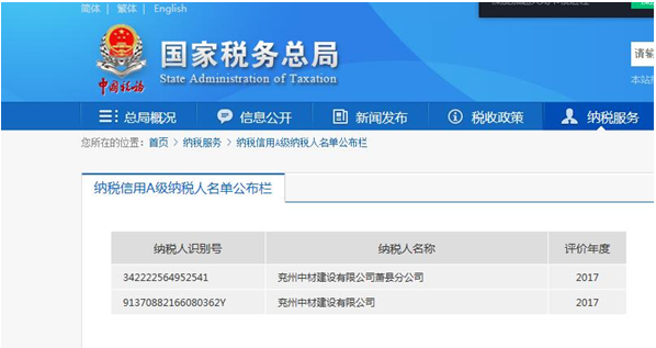 近日,稅務機關組織實施的2017年度納稅信用等級評定結果“出爐”,兗州中材建設有限公司繼2015、2016年度榮獲A級納稅信用企業(yè)后,再次榮獲A級納稅信用企業(yè)。