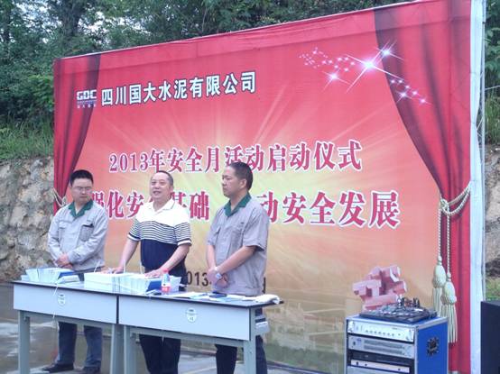 四川國大水泥舉行安全月啟動(dòng)儀式 6月1日,四川國大水泥有限公司舉行了以“強(qiáng)化安全基礎(chǔ),推動(dòng)安全發(fā)展”為主題的安全月啟動(dòng)儀式。江油市含增鎮(zhèn)安辦主任唐開文到會并講話。會議由國大副總鐘義主持,兗州中材國大礦山的全體員工也應(yīng)邀參加。 唐開文在講話中回顧了過去幾年國大水泥對安全生產(chǎn)作出的巨大貢獻(xiàn),他還表示,礦山現(xiàn)場的安全工作已成為江油市乃至綿陽市的一個(gè)安全示范亮點(diǎn),這與兗州中材的積極努力也是密不可分。國大安全經(jīng)理余德權(quán)在對安全生產(chǎn)諸方面作出重要指示后,也針對礦山安全施工提出更高的要求,希望兗州中材能將良好的安全工作習(xí)慣保持下去。會上,給全體員工發(fā)放了安全手冊。每位員工在安全月宣傳墻上簽名,這將會議推上了一個(gè)高潮。會后,員工們均表示:通過此次啟動(dòng)儀式,使得安全工作更加深入人心。對于安全生產(chǎn)的重視,時(shí)刻不敢松懈! 杜國賓