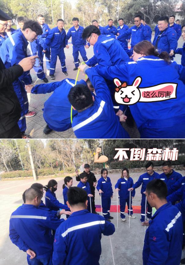 隨后又開展了摸石過河、團(tuán)隊(duì)七巧板、信任背摔等趣味游戲。