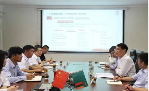 1月20日上午,蔣中文向中材礦山、蘇州中材、中材建設、智慧工業(yè)等在贊比亞團隊講授主題為“自信自立、守正創(chuàng)新、勇?lián)鷩H化發(fā)展前沿重任”的黨課,并提出以下要求:一是強化理論武裝,充分學習貫徹黨的二十大精神。二是牢固樹立戰(zhàn)略思維,確保中材國際發(fā)展戰(zhàn)略在贊比亞有效落實。三是堅持立足屬地發(fā)展,接續(xù)公司國際化發(fā)展偉大事業(yè)。