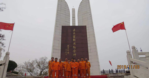 隨后,大家一起登上孟良崮山頂,瞻仰孟良崮戰(zhàn)役紀念碑,站在山頂遠眺,當年的孟良崮戰(zhàn)場盡收眼底,山巒迭起,地勢險峻,戰(zhàn)役的艱難程度可想而知?;厥啄嵌渭で槿紵臍q月,給大家?guī)淼某怂枷氲恼鸷?、心靈的洗禮,更有一種不忘初心、勇往無前的熱血豪情。