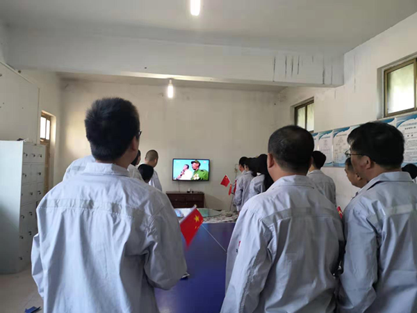 10月1日上午,馬村分公司及晉城澤州和陽(yáng)城的相關(guān)人員在會(huì)議室共同觀看“中華人民共和國(guó)成立70周年大會(huì)、閱兵式和群眾游行”的現(xiàn)場(chǎng)直播,當(dāng)國(guó)歌響起,國(guó)旗升起的那一刻,參會(huì)人員全部起立,懷著激動(dòng)地心情,參與了升旗儀式。